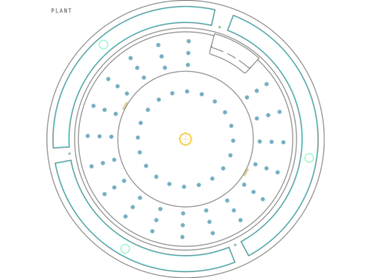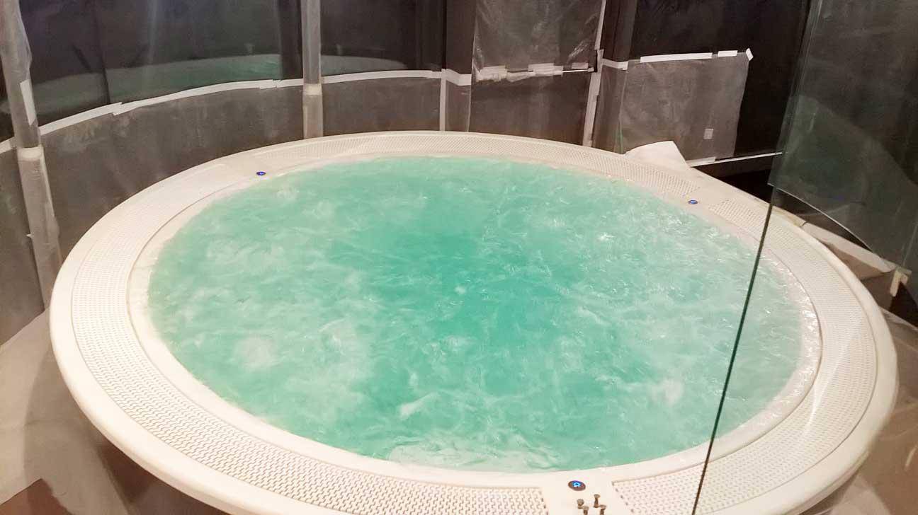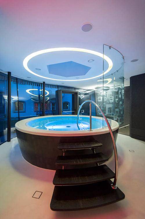 The jacuzzi has been inserted inside a room, also circular, able to give