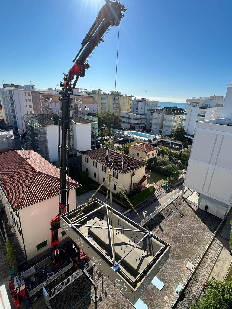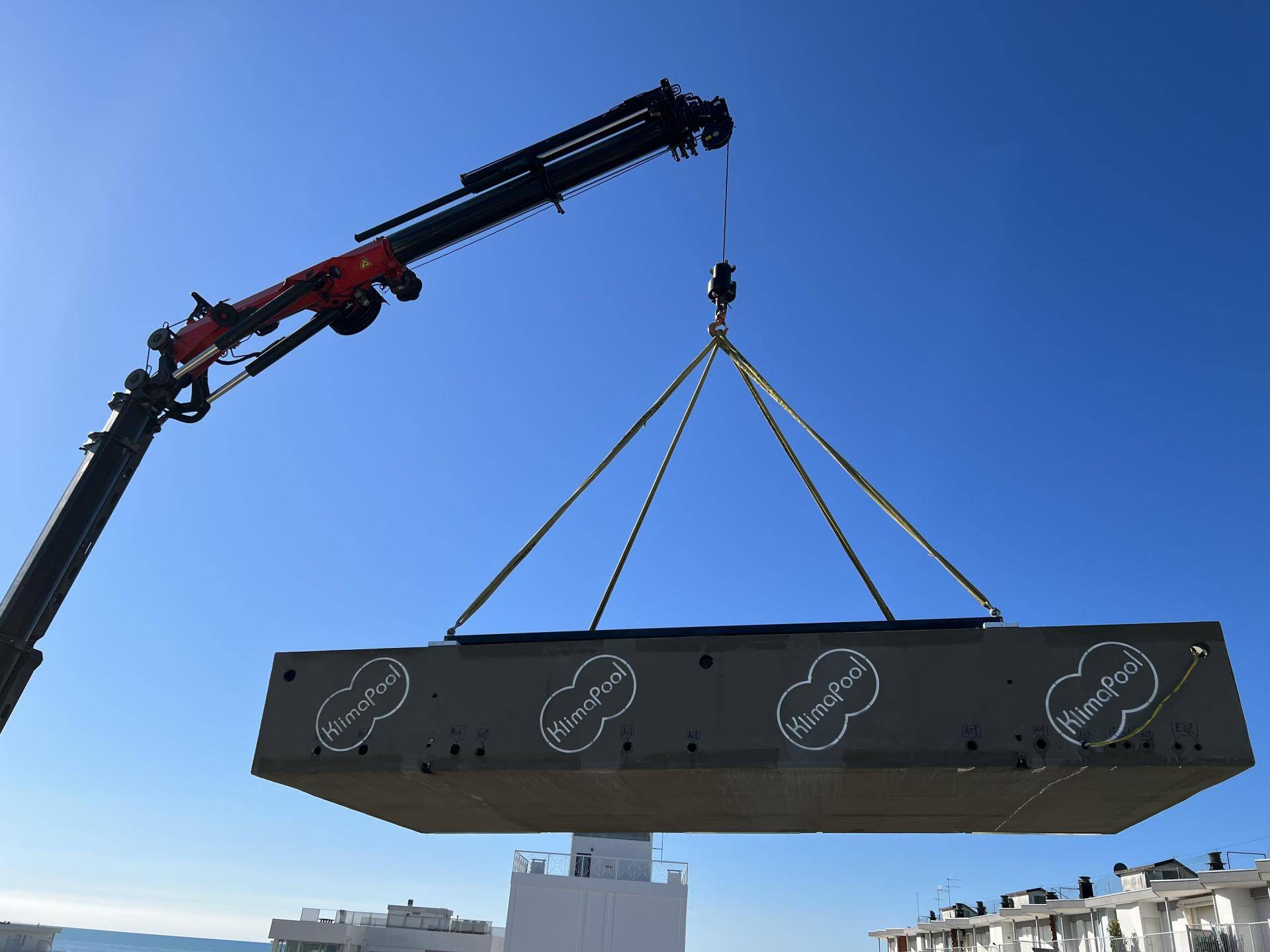 being done by the companies involved in the project while respecting, as a result, the scheduled execution time. The KLIMAPOOL pool was completely manufactured at the production site and then transported and placed on the terrace, eliminating the assembly time on site.