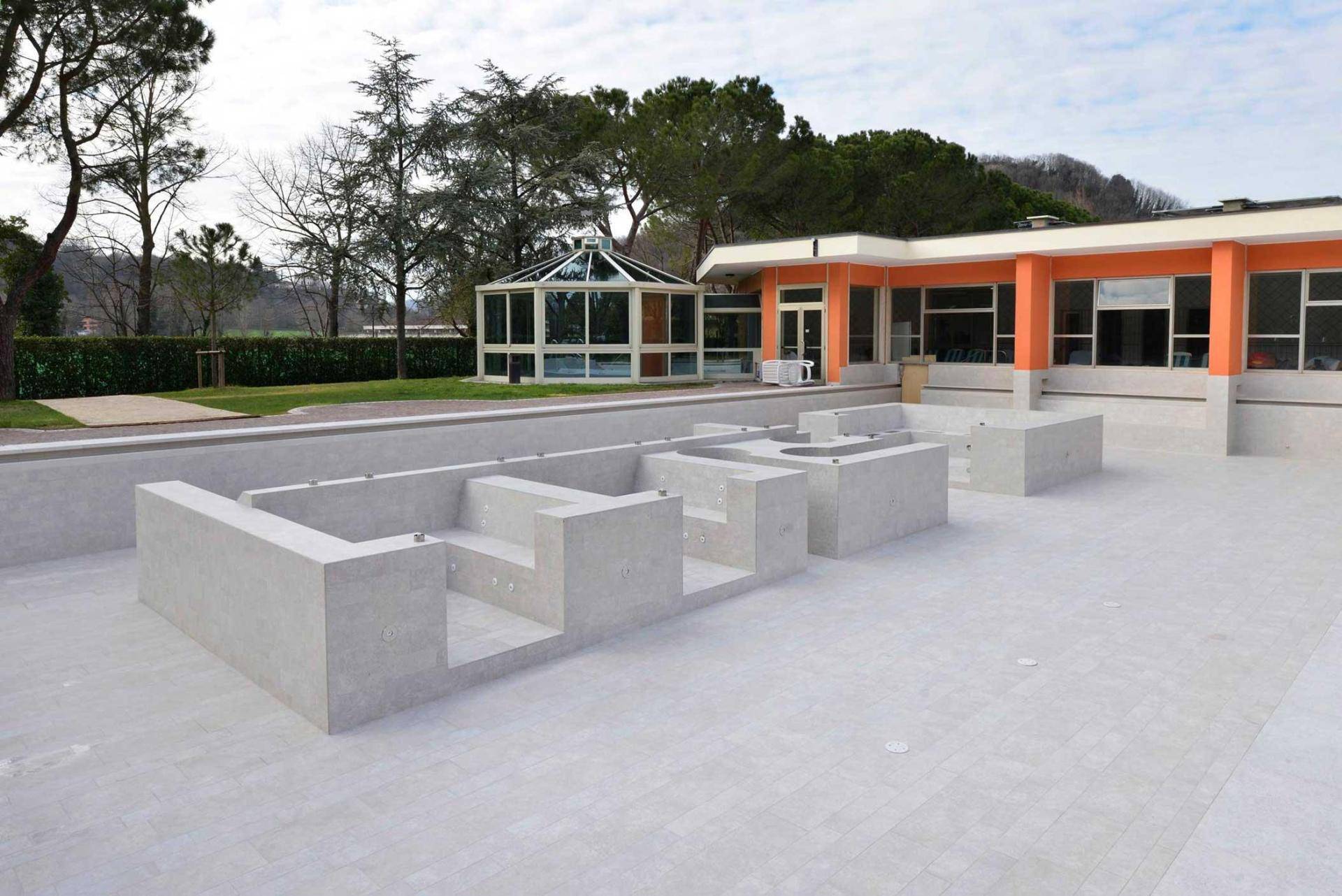 The pool has a new, minimal and modern look with its right angles and clean lines. The entrance