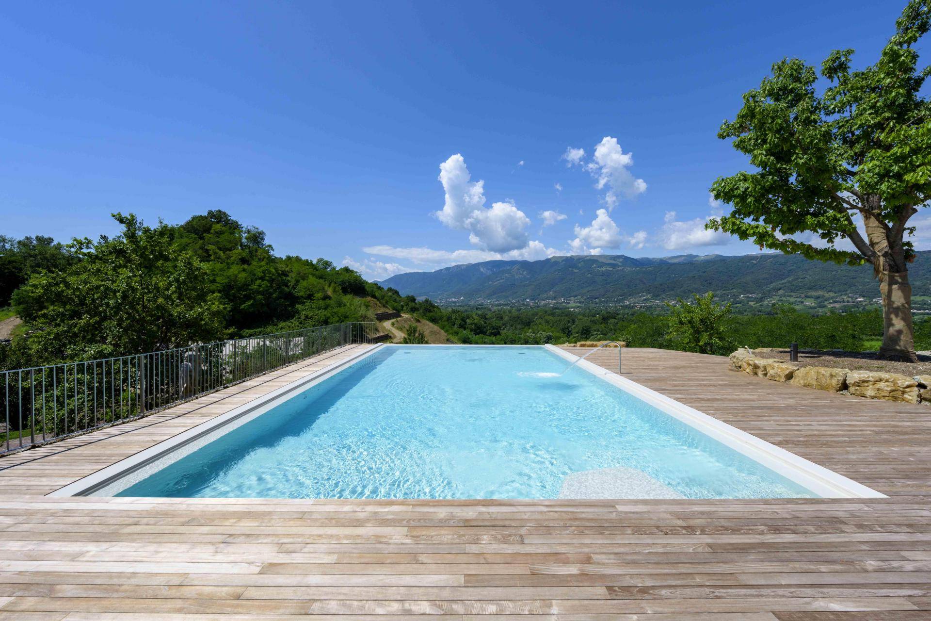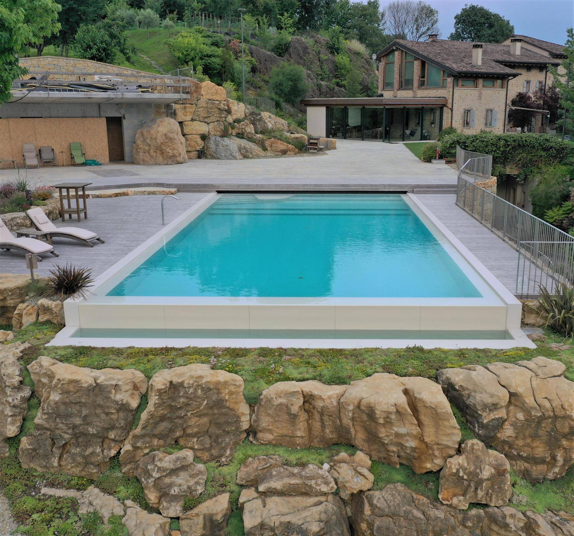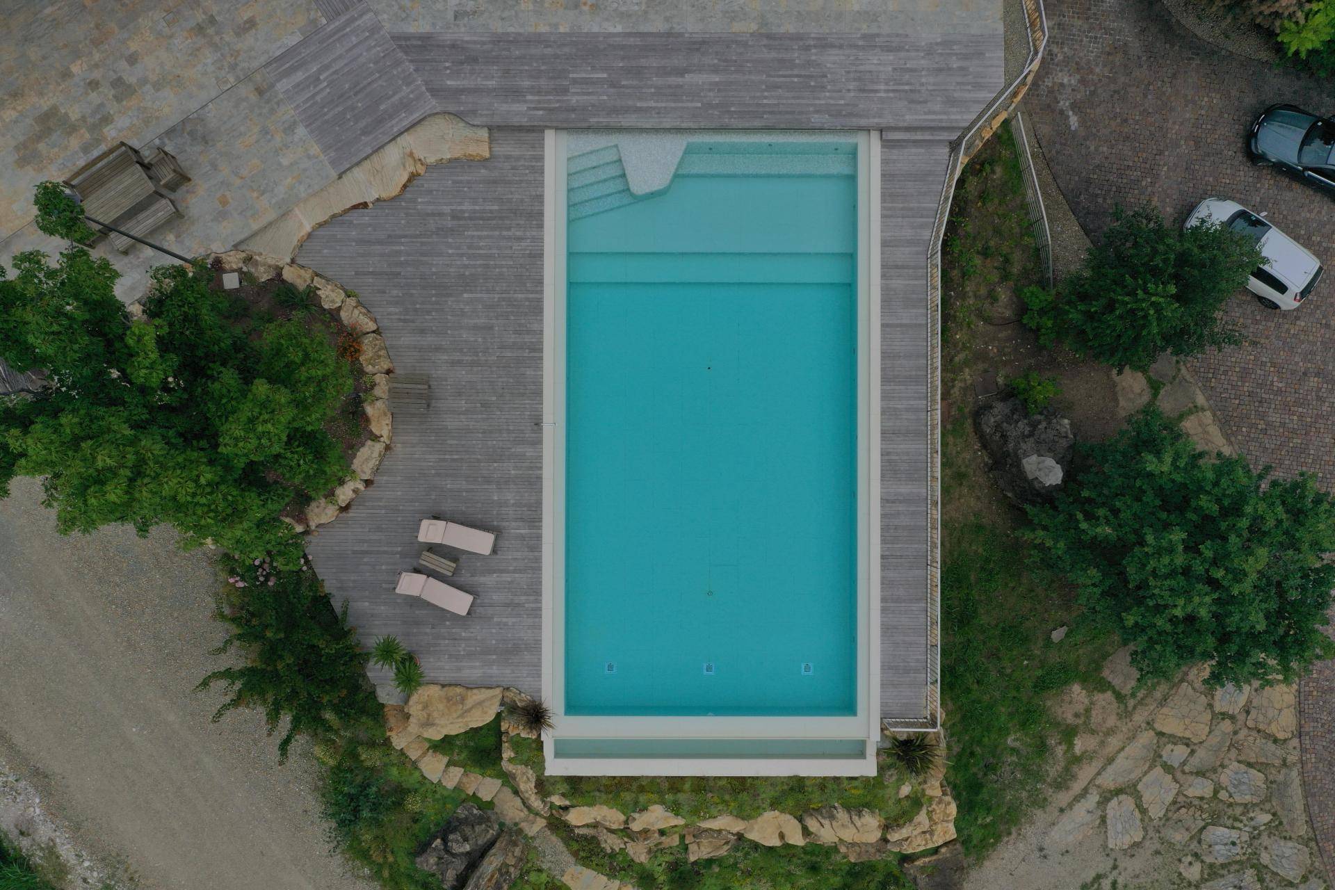 Una piscina sospesa tra eleganza e tecnologia, modellata con il sistema Klimapool