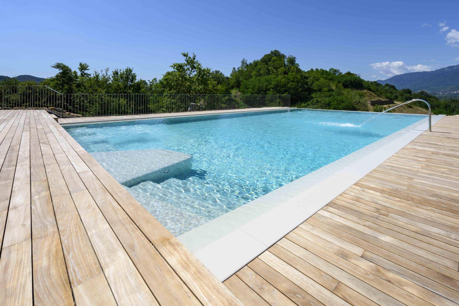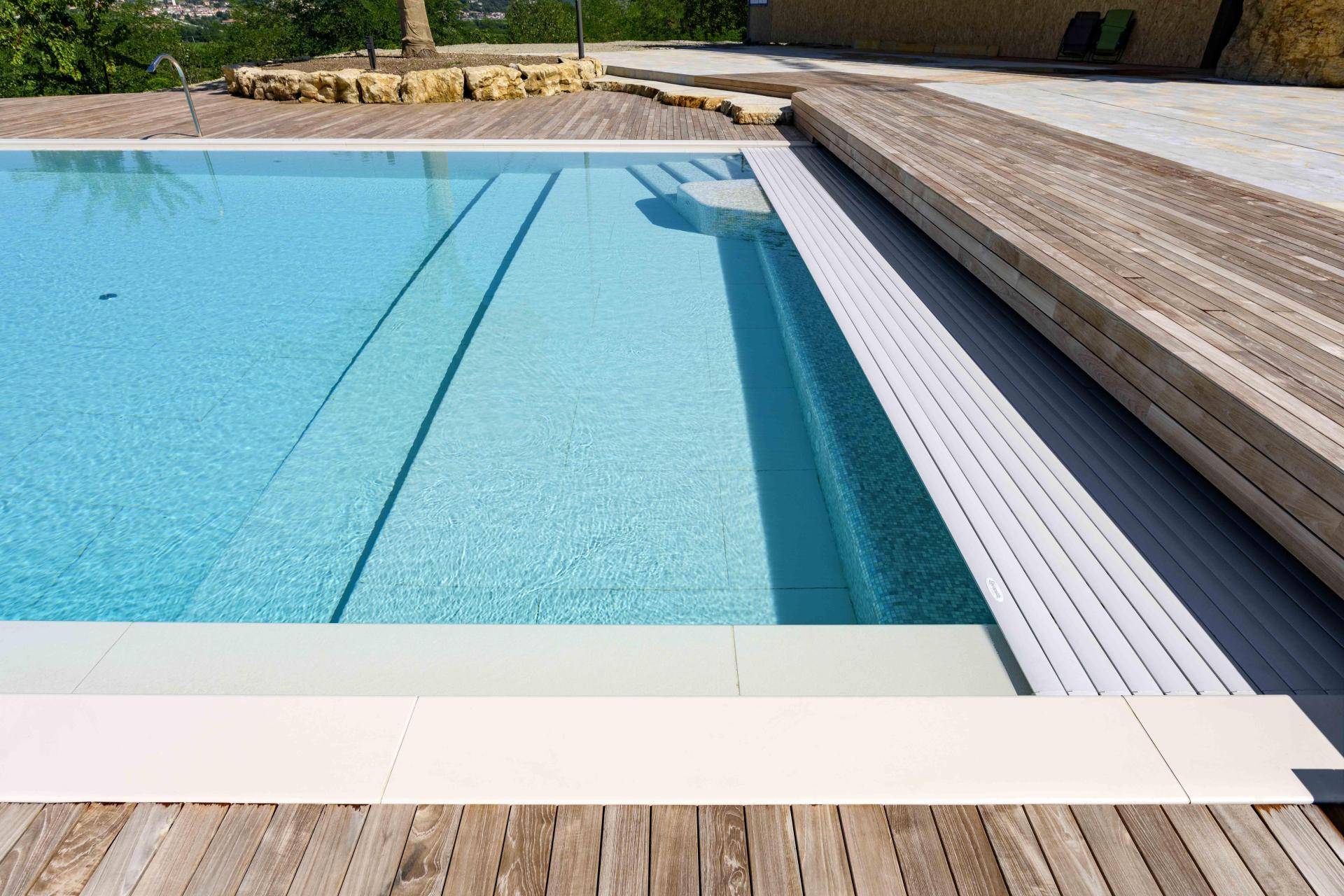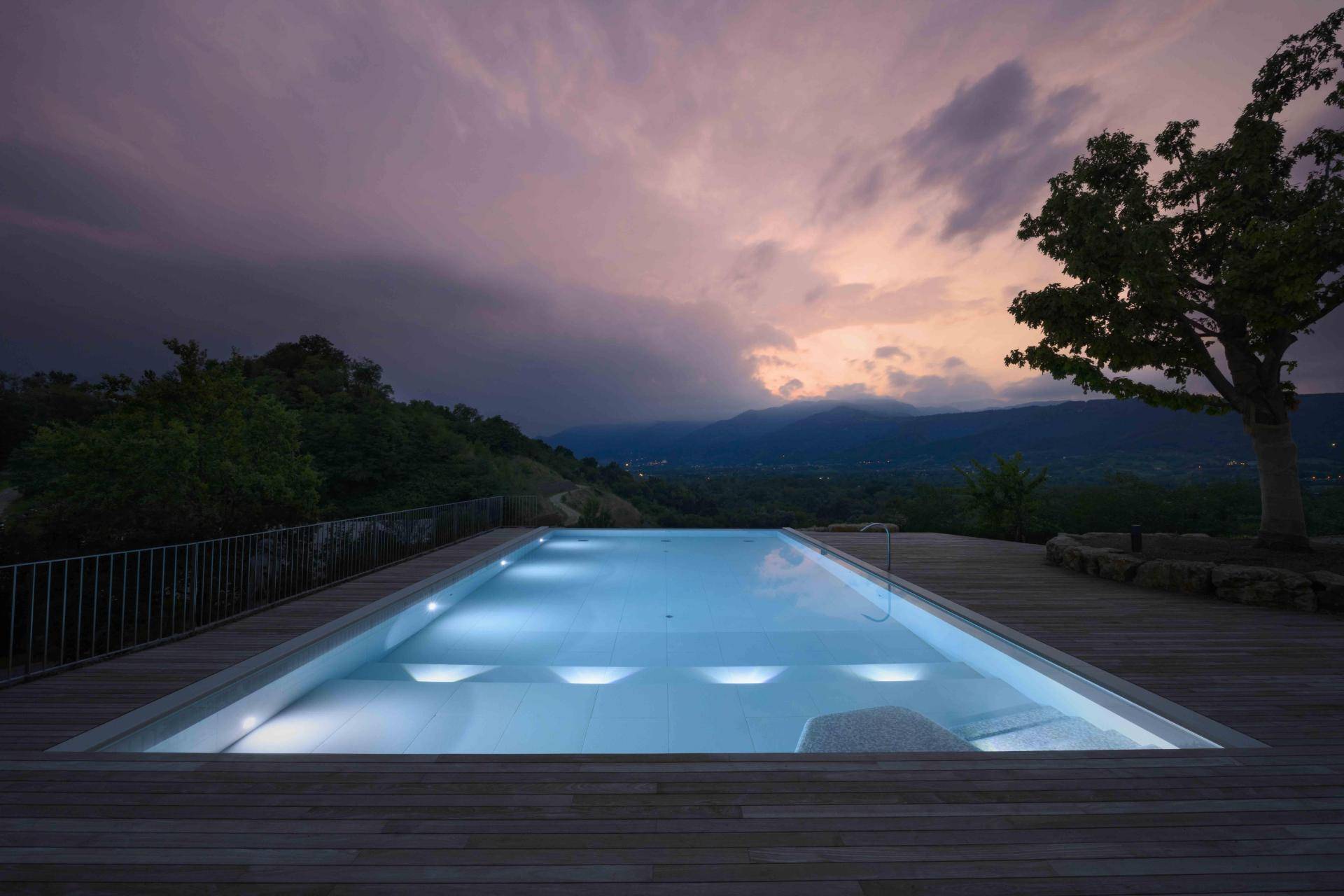 Il rivestimento in pietra sinterizzata e mosaico, insieme all’illuminazione subacquea RGB, crea un’esperienza estetica e sensoriale unica. La copertura automatica preserva temperatura, pulizia e sicurezza.