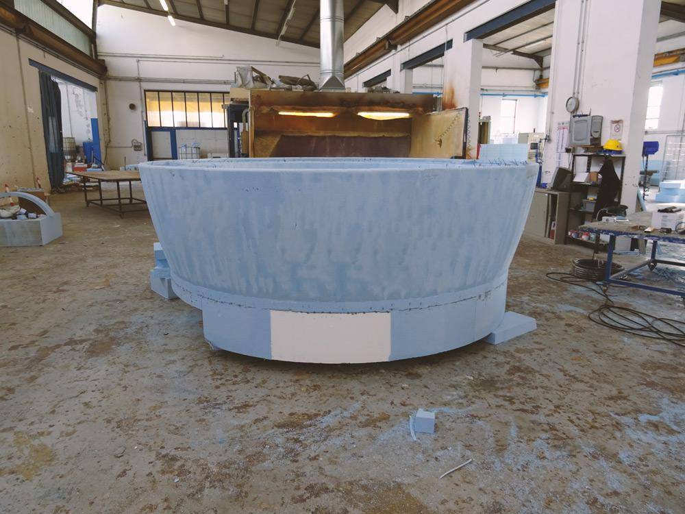 La vasca è stata inserita all'interno di una stanza, anch'essa circolare, in grado