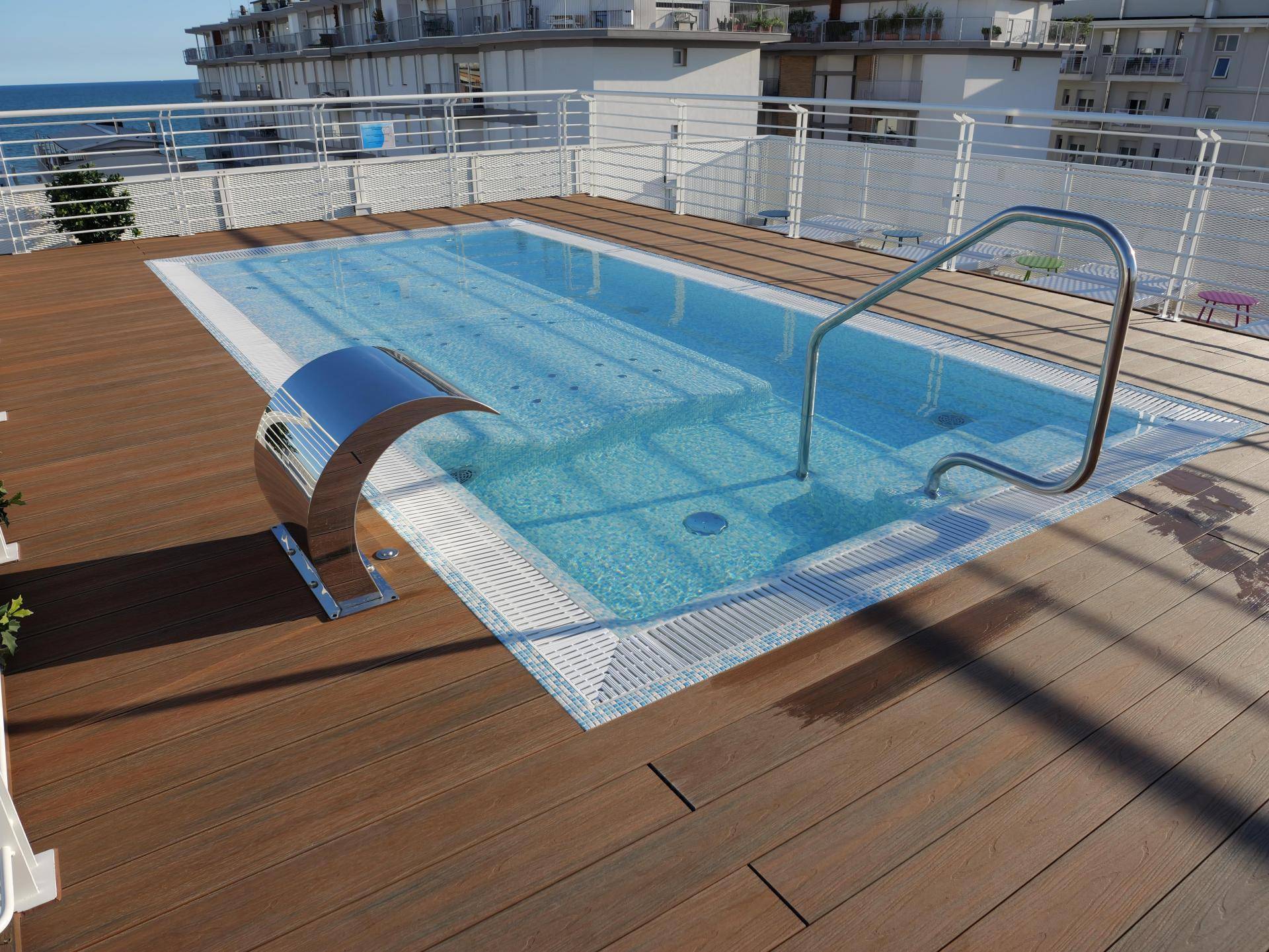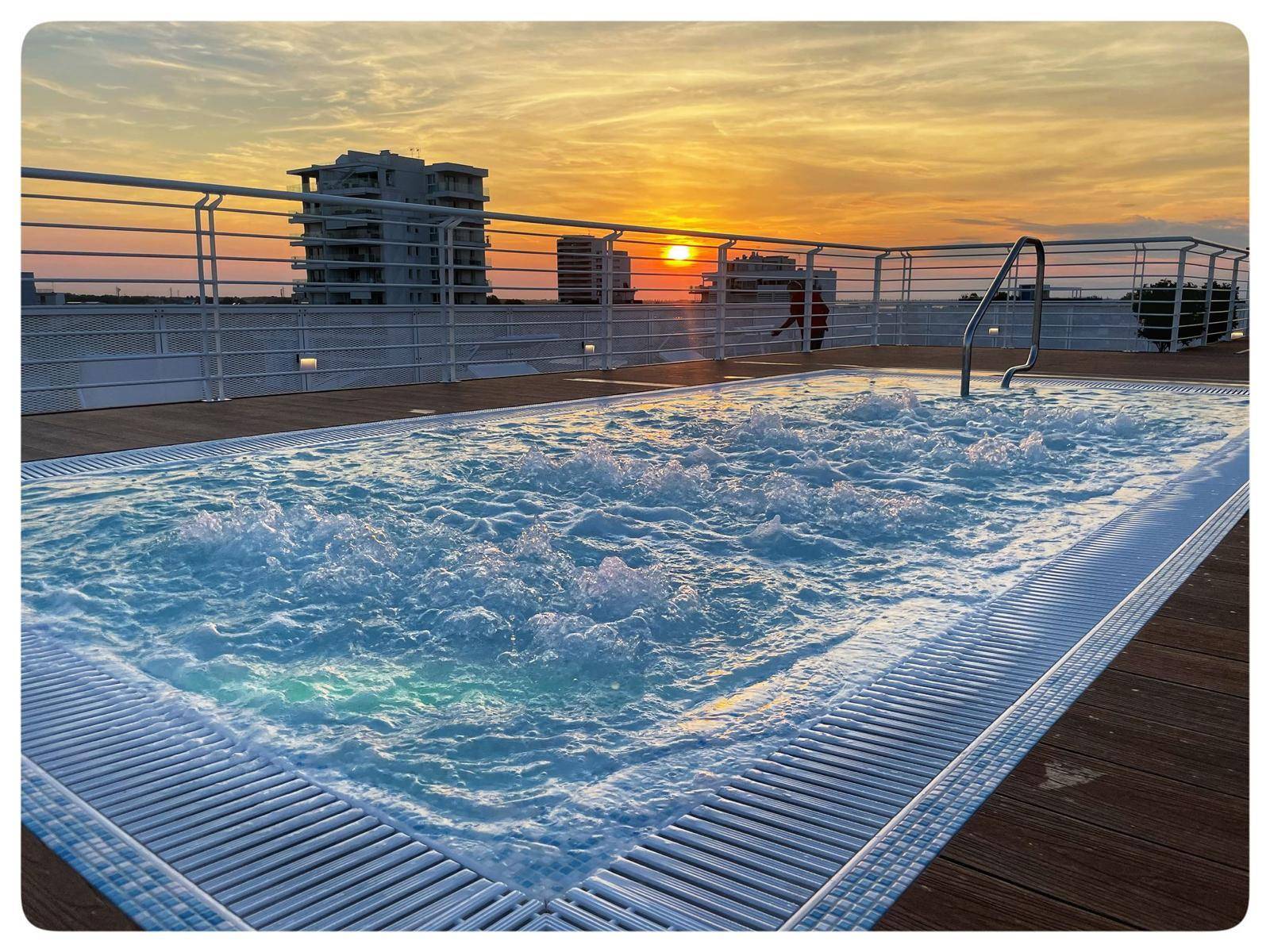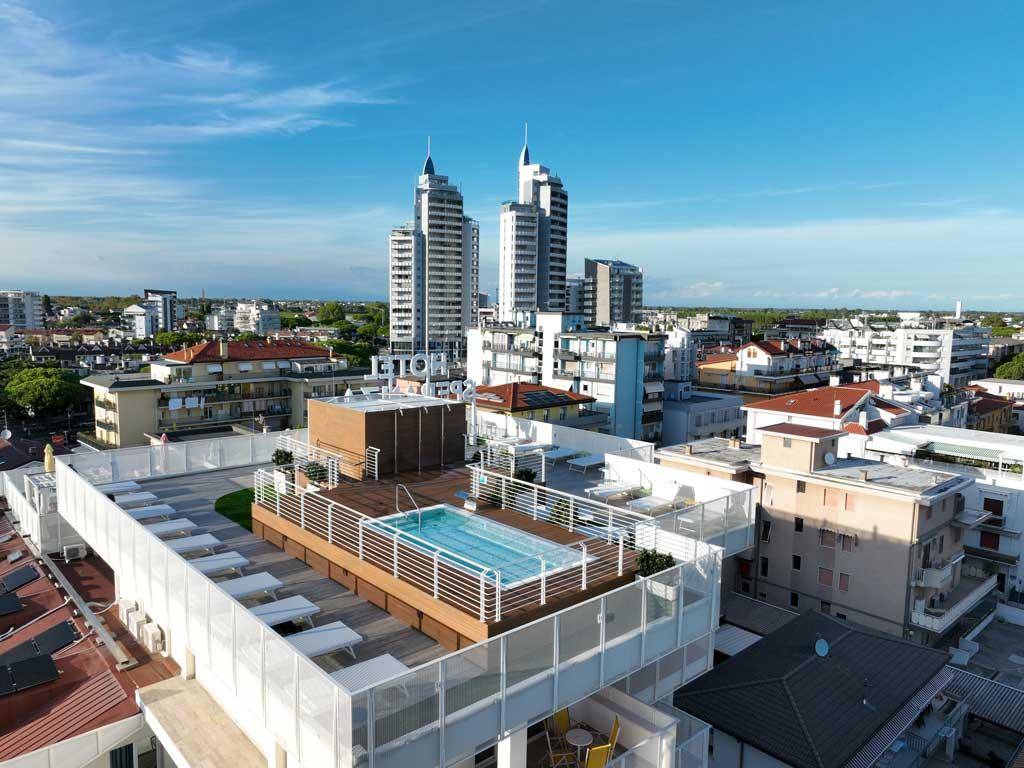 Il progetto nasce per completare l'offerta di servizi che l'Hotel rivolge essenzialmente alle famiglie. La terrazza panoramica dell'Hotel posta al sesto piano diviene uno spazio "con vista" dove al centro si colloca la piscina realizzata in blocco unico con arredo interno composto da quattro lettini idro-massaggio. La piscina KLIMAPOOL è stata realizzata con struttura auto-portante e "flottante", che poggia sulla superficie terrazzata senza necessità di ancoraggi al suolo garantendone l'integrità. La soluzione di