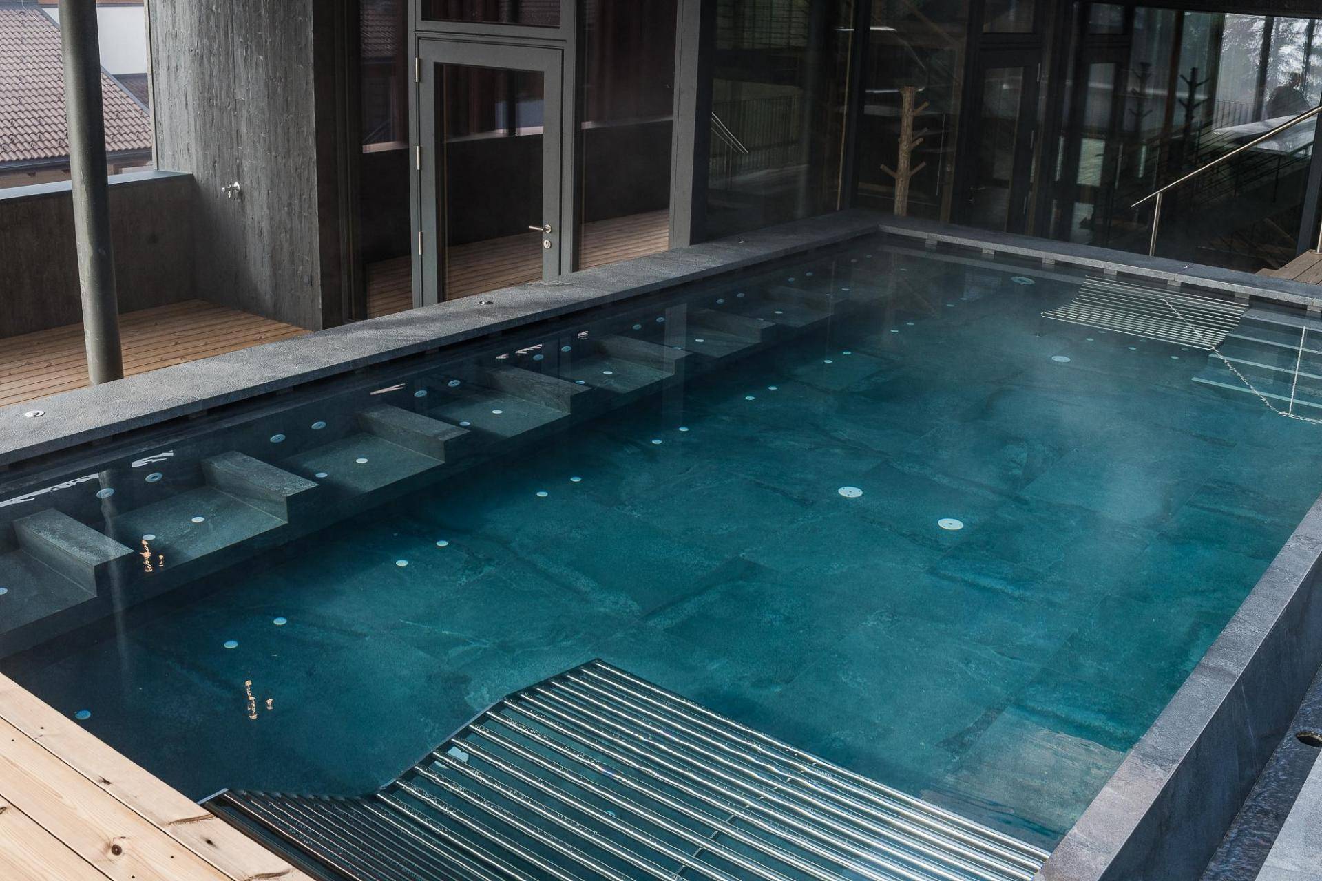 l'acqua stessa della piscina a sostenere le pareti grazie ad un