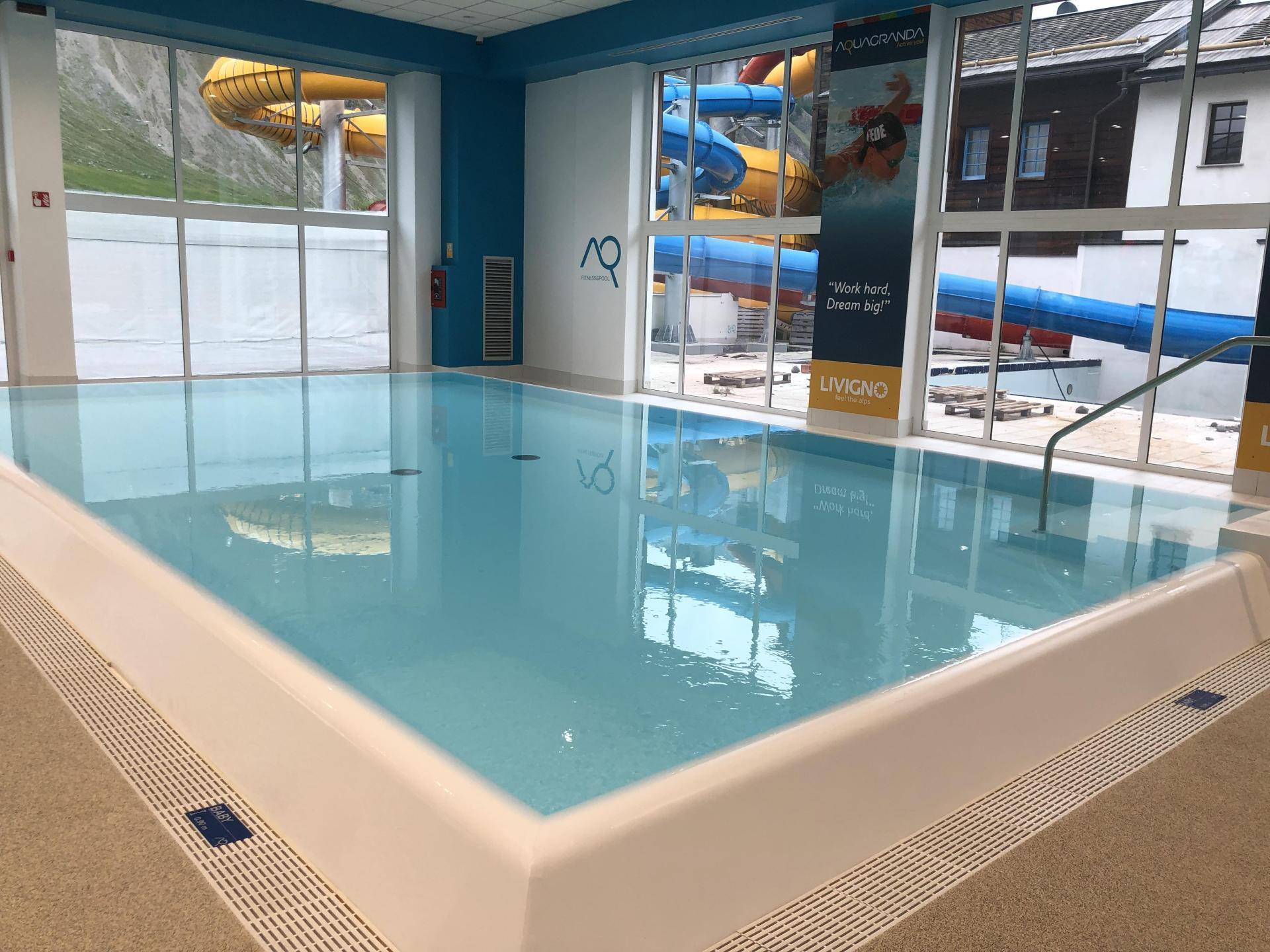 Il sistema Klimapool Reevolution ha permesso di alzare il livello dell’acqua, facendo sporgere le pareti della piscina sopra il pavimento: l’altezza dell’acqua è passata da 60 cm a 90 cm, trasformando la vasca in un ambiente più accogliente e funzionale per i visitatori.
